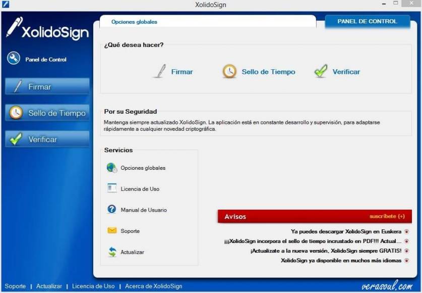 Software totalmente gratuito sin límite de tamaño, de formato de archivos o de número de documentos. Ofrece un servicio de sellado de tiempo reconocido gratuito. Pensado para utilizarlo en todos los ambitos: para particulares, para administraciones públicas y para empresas.