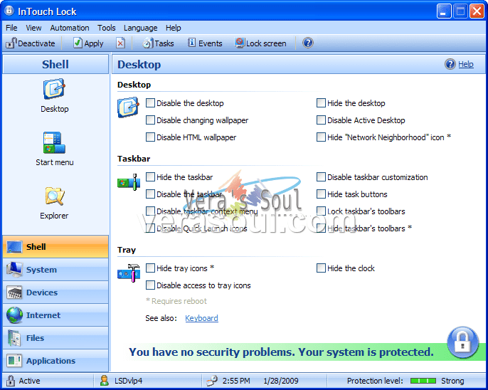 Si empleamos InTouch Lock, podremos bloquear el escritorio, la barra de tareas, la conexión a Internet y muchas otras funciones con total simplicidad.