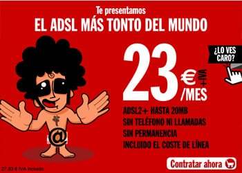 Su servicio de ADSL, llamado «El ADSL más tonto del mundo»‘, tiene un coste de 8 euros, sin cuota de línea sin impuestos, tal y como lo suelen ofrecer otras operadoras. Pero la compañía ha optado por promocionar su nueva oferta sin letra pequeña. De hecho, en la página web aparece un muñeco «Pepe» completamente desnudo para demostrar que su promoción no tiene nada oculto y otro vestido de pirata cuando no ofrecen los 15 euros de cuota de línea.