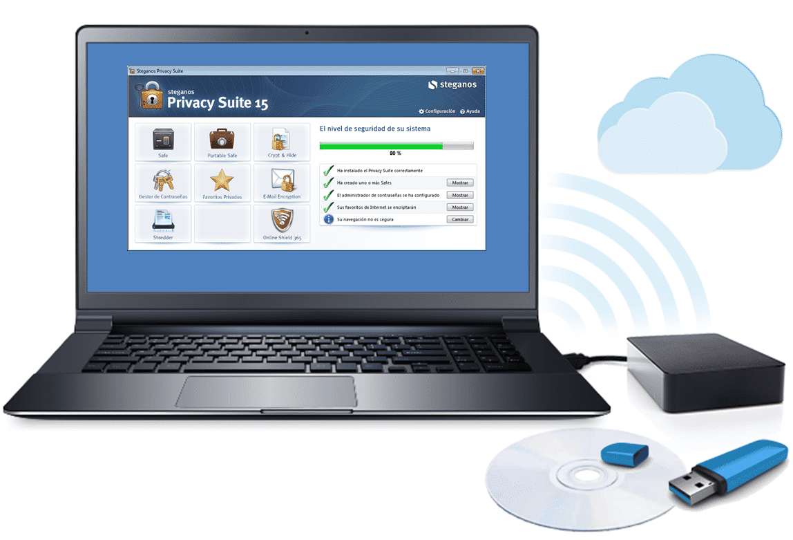 Privacy Suite ofrece la protección más completa para datos y contraseñas en PCs, dispositivos externos, Smartphones y también en la nube.