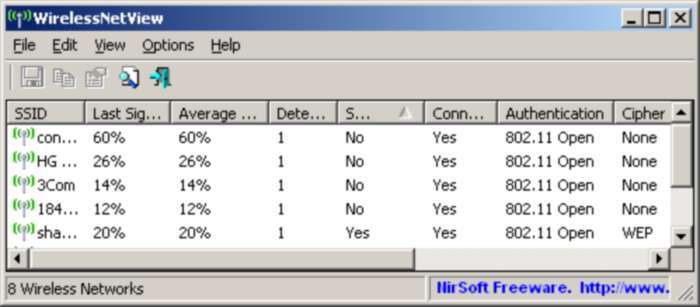 WirelessNetView es un programa totalmente gratuito para Windows con el que podemos detectar las redes inalámbricas que se encuentran a nuestro alcance, no solo nos permitirá saber cuantas redes hay sino que podremos observar toda la actividad que se está desarrollando en ellas de manera sencilla y simple.